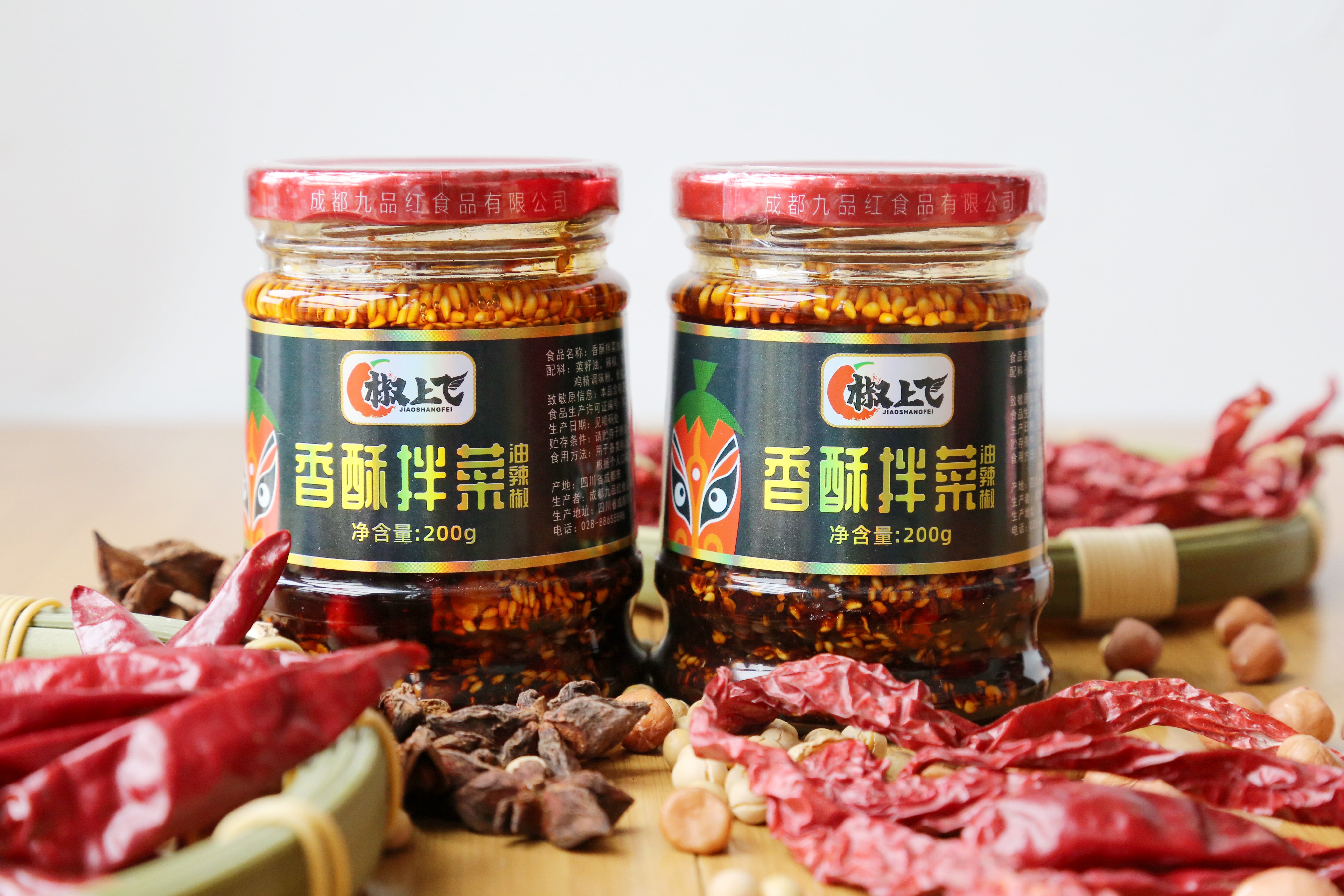 產品名稱: 椒上飛 麻辣辣椒红油 200g 椒上飛 油泼辣子 200g 椒上飛 香酥拌菜 200g